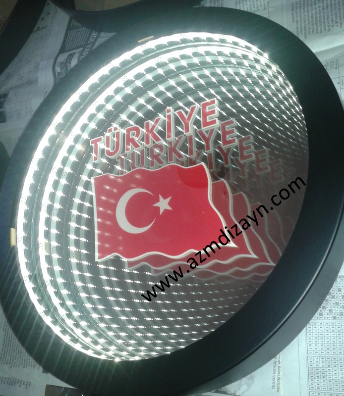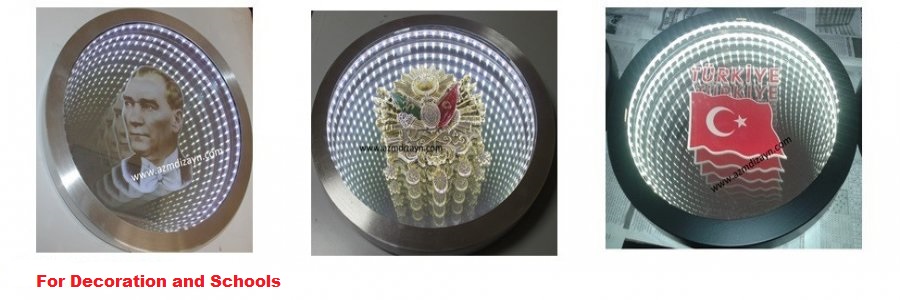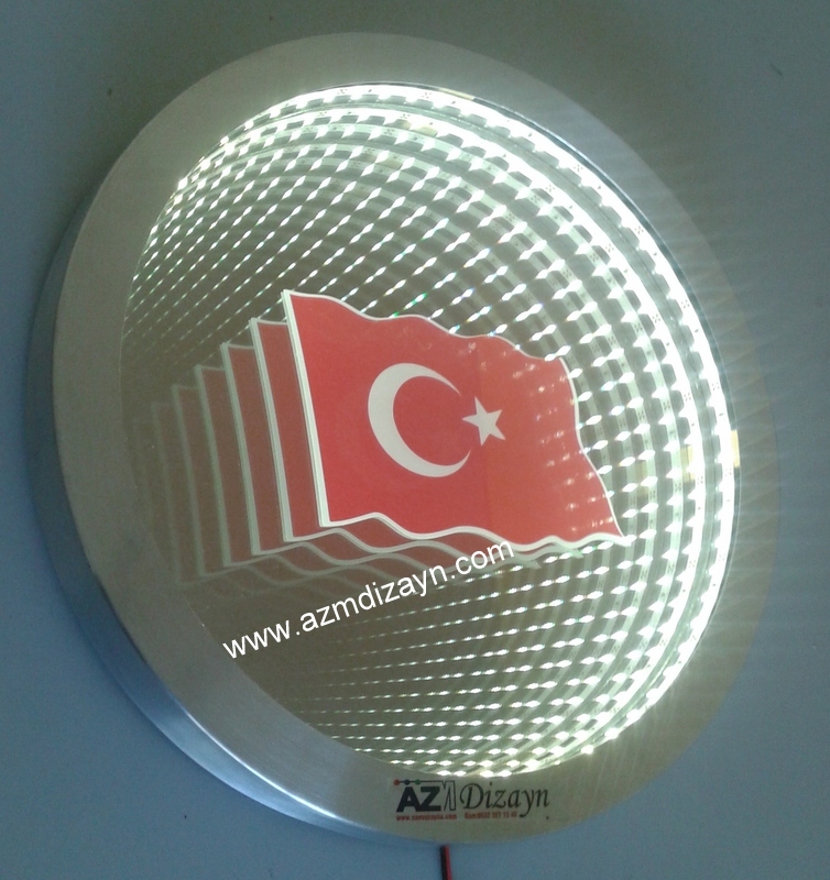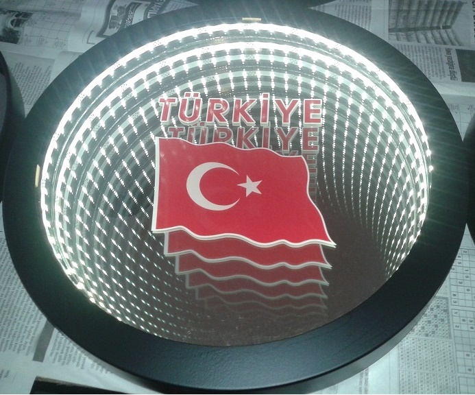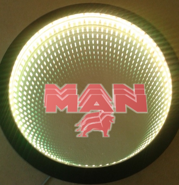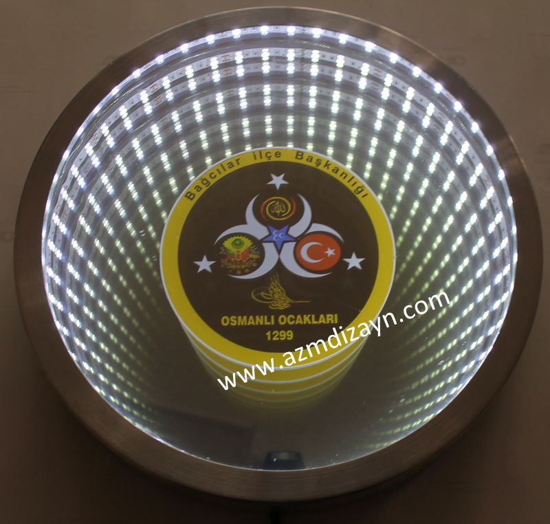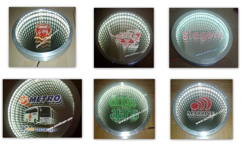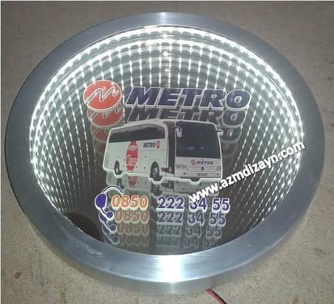 Name, logo can be made and applied in any desired design. It gives a wider view in narrow spaces. In addition, you can use our ready-made 30cm and 40cm diameter round mirrors in single color and RGB (12 volts, 24 volts when requested).