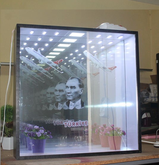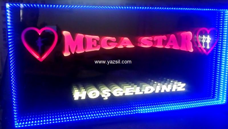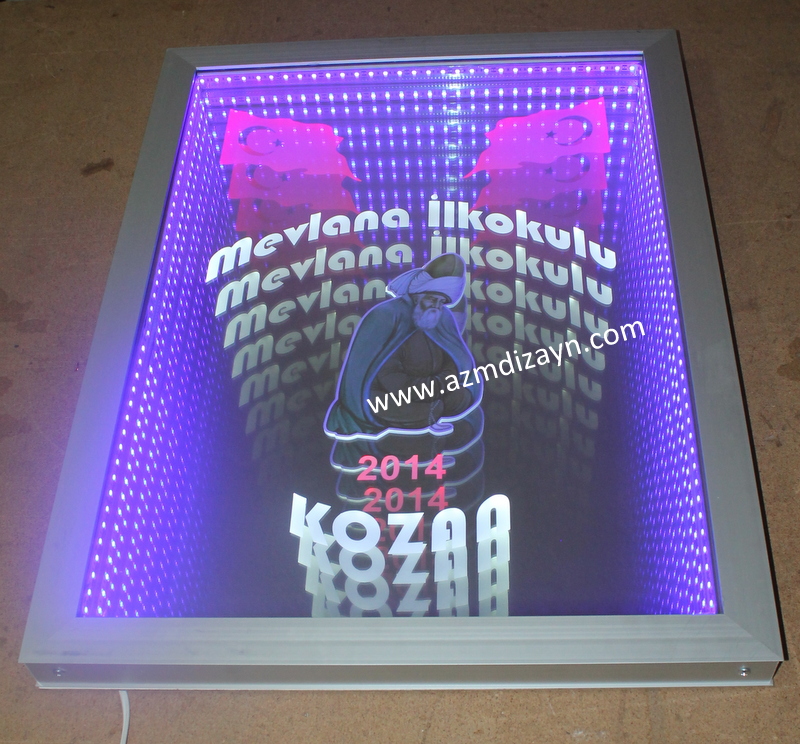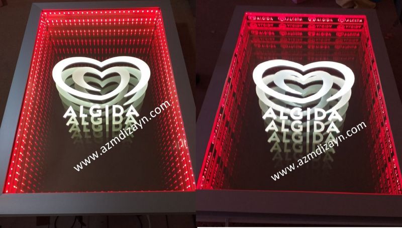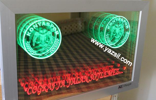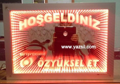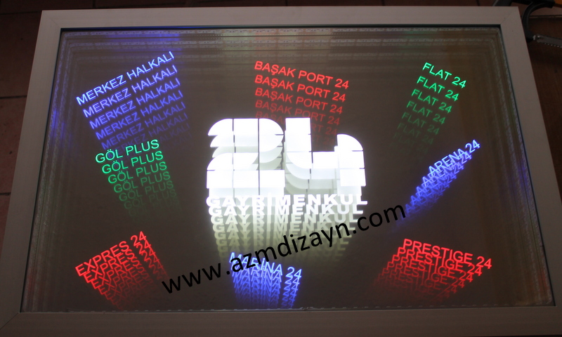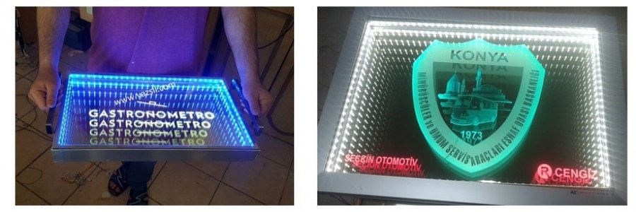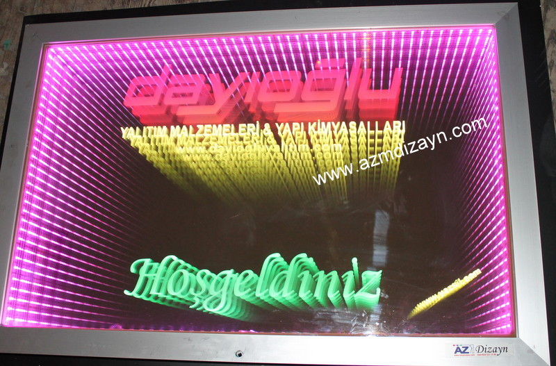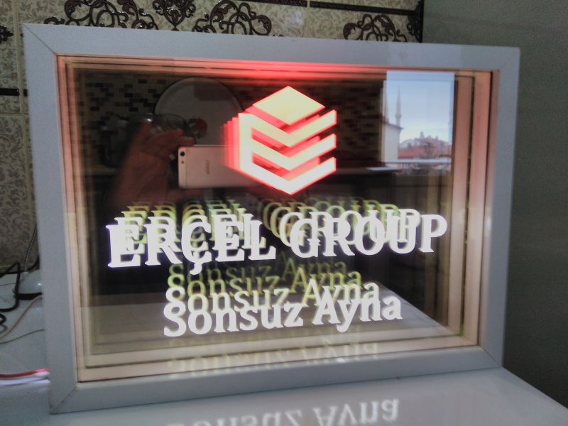 Name, logo can be made and applied in any desired design. It gives a wider view in narrow spaces. In addition, you can use our ready-made 30cm and 40cm diameter round mirrors in single color and RGB (12 volts, 24 volts when requested).